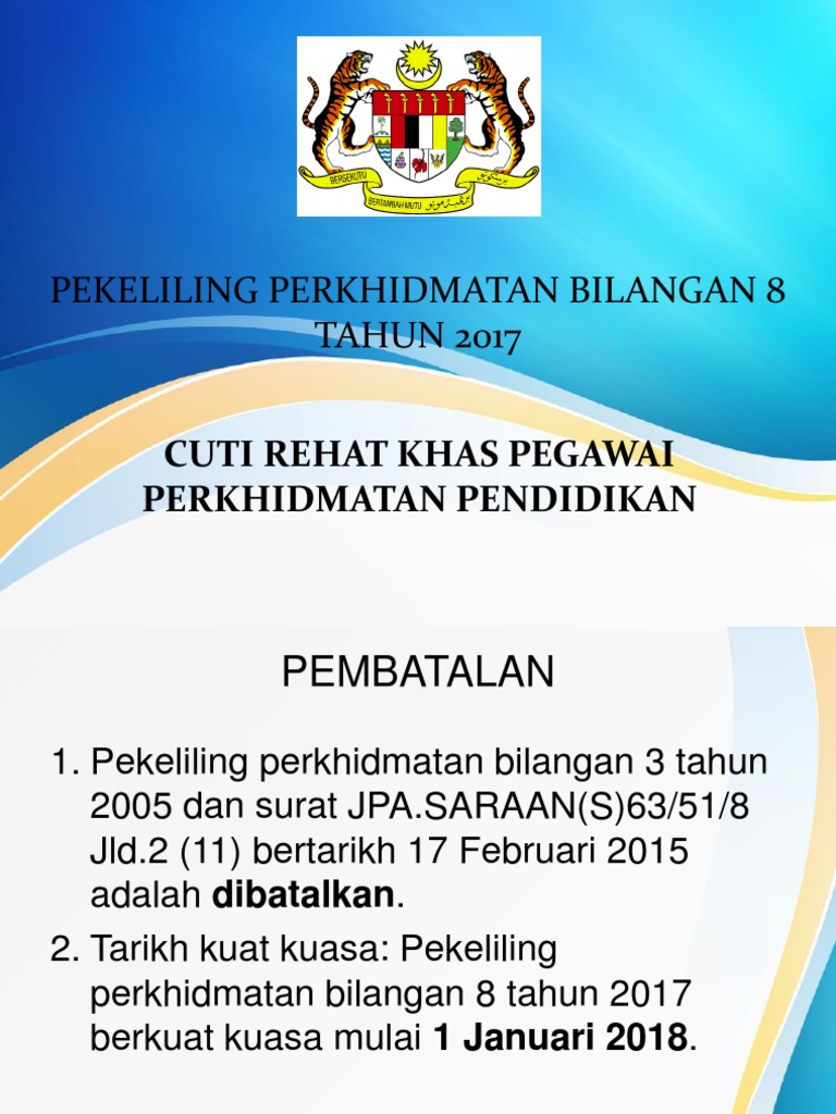 Pp Bil 08 2017 Pekeliling Cuti Rehat Khas Pegawai Perkhidmatan Pendidikan Pekeliling Terbaru Kerajaan from pekeliling.com Pekeliling cuti rehat khas 2018. Check spelling or type a new query. We did not find results for: Maybe you would like to learn more about one of these?