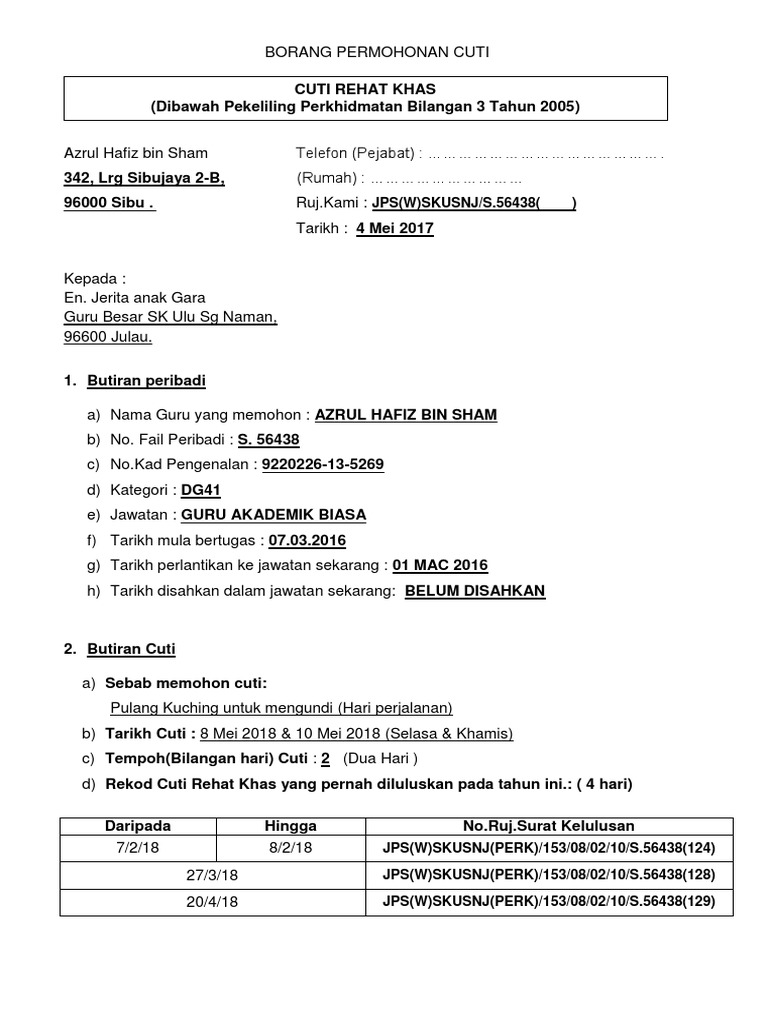Cuti Rehat Khas Kemudahan Atau Hak Panduan Pemberian Cuti Rehat Khas Berdasarkan Surat Pekeliling Mykssr Com from 1.bp.blogspot.com Maybe you would like to learn more about one of these? We did not find results for: Check spelling or type a new query. Pekeliling cuti rehat khas 2018.